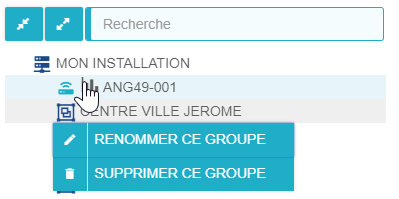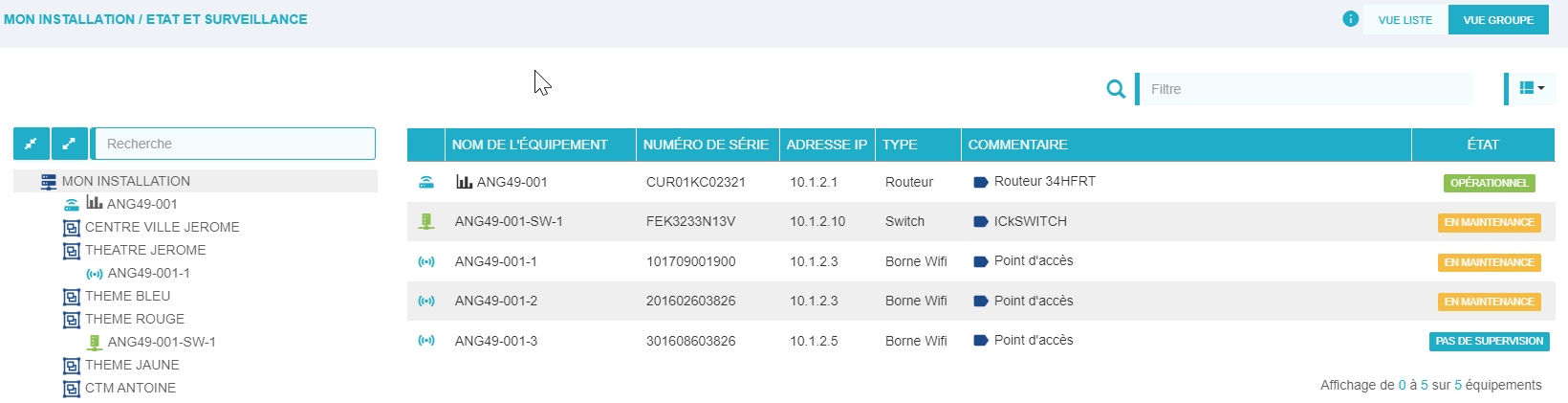 Cliquer sur l'onglet Vue groupe pour avoir accès à l'arborescence des groupes d'équipements.