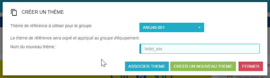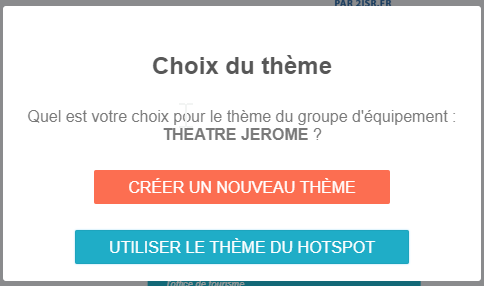 Par défaut, si le thème du groupe d'équipement est le même que le hotspot une fenêtre apparaîtra pour vous demander de continuer avec le thème du hotspot ou de créer un nouveau thème.