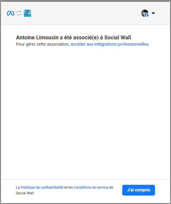 Coté Facebook : Pour supprimer l'accès à votre page directement depuis Facebook il faut se rendre dans les paramètres du compte, puis dans les intégrations professionnelles et supprimer l'application active Social Wall