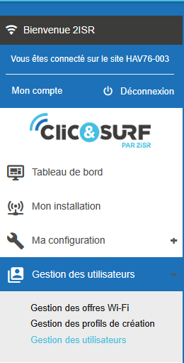 Depuis le menu gauche cliquez sur Gérer mes utilisateurs