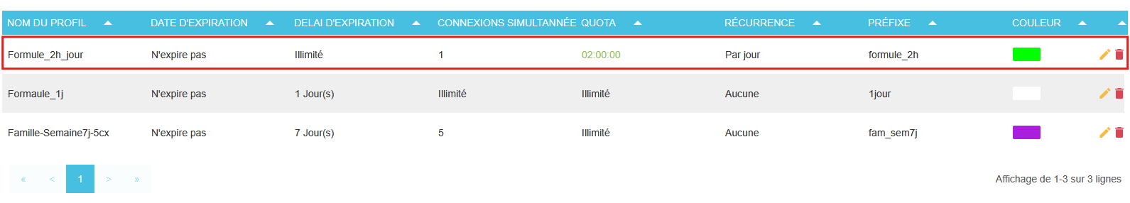 Quota (obligatoire) : Il faut indiquer sur l'utilisateur doit disposer d'une connexion illimitée ou si celui-ci sera limité à plusieurs heures