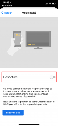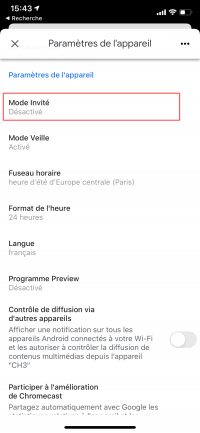 8- Avant de continuer, rendez-vous dans la configuration de la Chromecast juste configurée pour désactiver le mode invité et récupérer l'adresse MAC