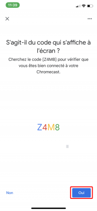 7- Vérifiez que l'ID de la Chromecast qui apparait sur votre application correspond bien à celui affiché sur la TV