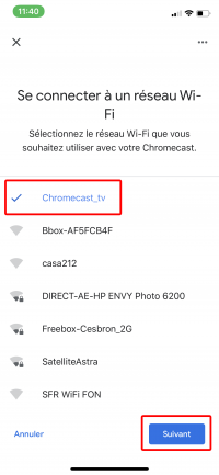 La première étape consiste à associer à la Chromecast au bon réseau WiFi.
