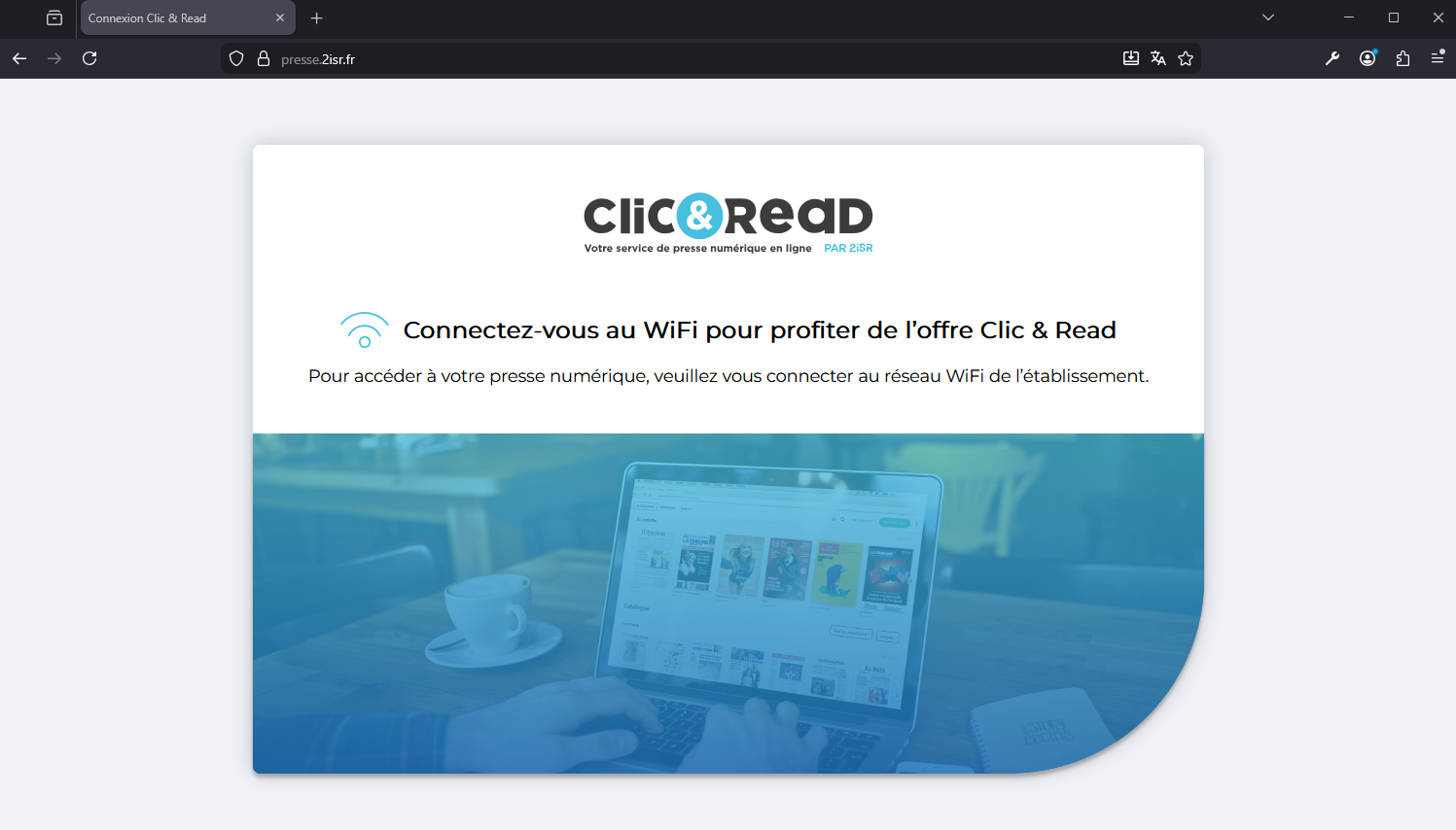 Dans le cas contraire, lors de l'accès au catalogue, une page d'information sera affichée vous invitant à basculer sur le réseau Wifi de l'établissement :